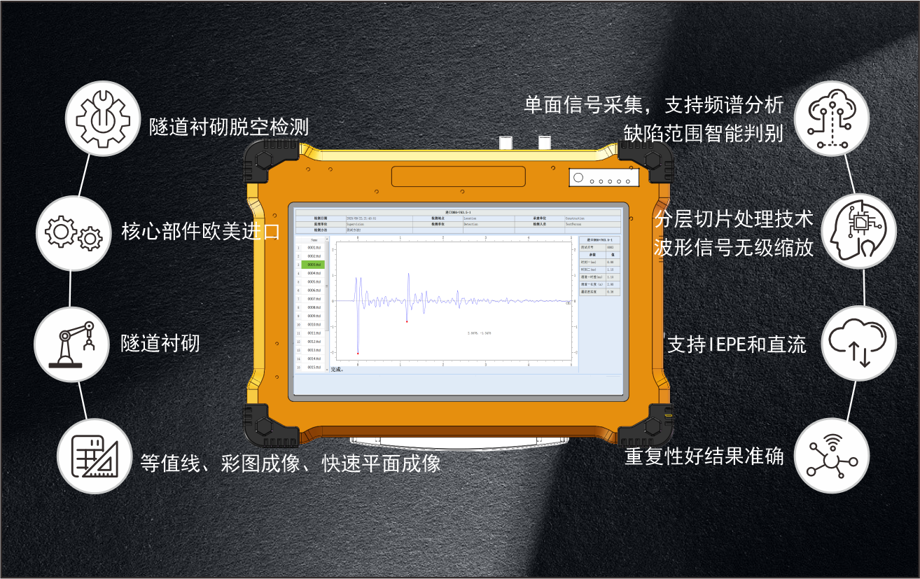 智能分析:单面信号采集,支持频谱分析、缺陷范围智能判别。