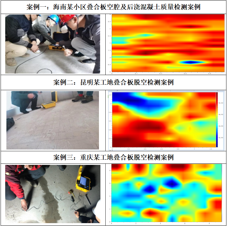 冲击回波法:当被测对象存在缺陷时,冲击弹性波信号会产生反射,通过对提取信号的分析,结合平面成像技术可描绘缺陷的形态及空间位置。