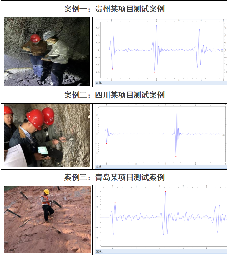 锚杆长度及灌浆密实度测试,主要利用弹性波的反射特性、波形对比及衰减特性;通过弹性波的反射时间及对应波速可检测出锚杆长度,通过波形对比及衰减特性可确定锚杆注浆密实度。